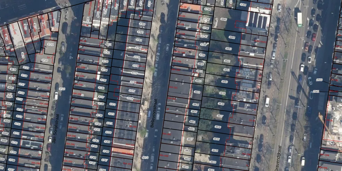 Bellevoysstraat 20-A is gelegen op kadastraal perceel DHV00C3803. Deze kadastrale aanduiding is uniek en wordt gebruikt door het Kadaster om eigendomsrechten en andere zakelijke rechten vast te leggen. Het perceel maakt onderdeel uit van de kadastrale gemeente Delfshaven.