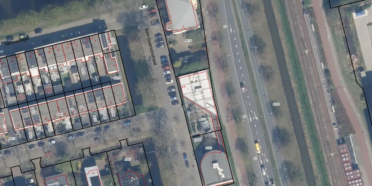 Het perceel waarop Ben-Goerionstraat 6 staat heeft een oppervlakte van 593 m². Dit is een groot perceel. De perceeloppervlakte wordt geregistreerd door het Kadaster. Gedetailleerde informatie over de maten van dit perceel kunt u vinden in het rapport Kadastrale kaart met maatvoering van Ben-Goerionstraat 6.