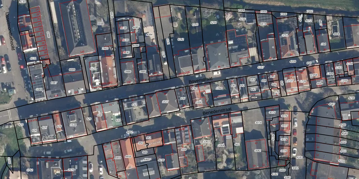 Benedenstraat 18 is gelegen op kadastraal perceel ISM01D635. Deze kadastrale aanduiding is uniek en wordt gebruikt door het Kadaster om eigendomsrechten en andere zakelijke rechten vast te leggen. Het perceel maakt onderdeel uit van de kadastrale gemeente IJsselmonde.