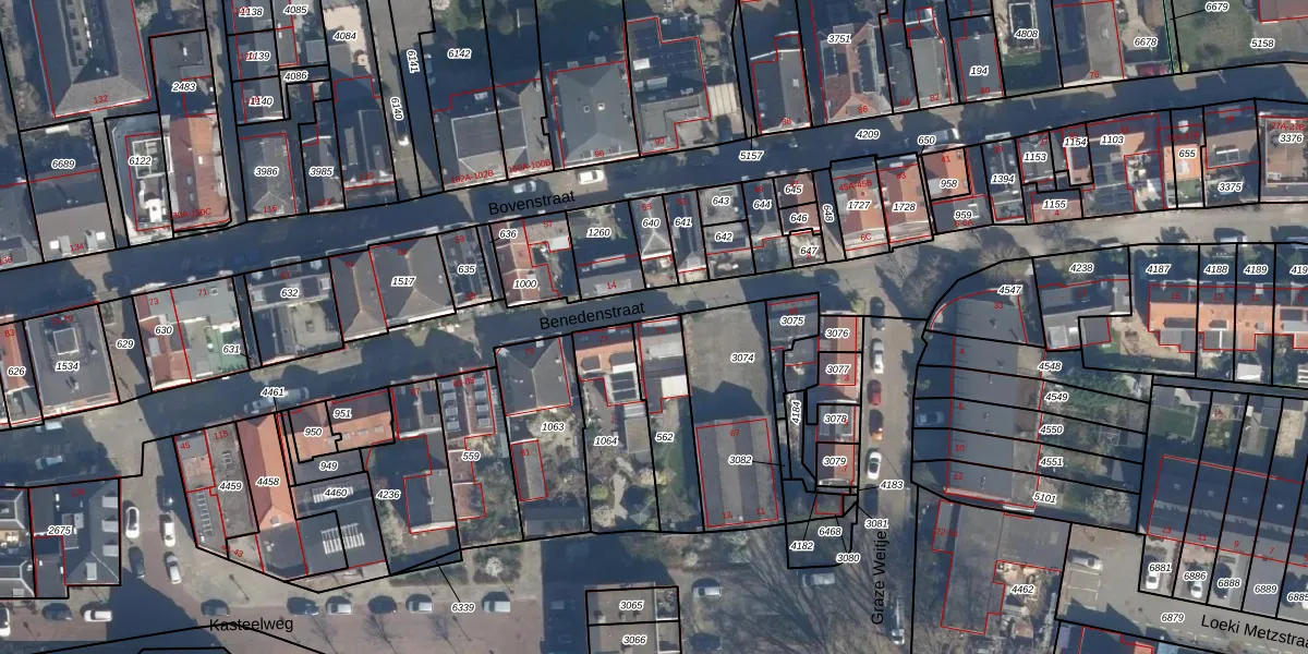Gebruik de zoekbalk of klik op een perceel voor informatie over de adressen binnen dit perceel.