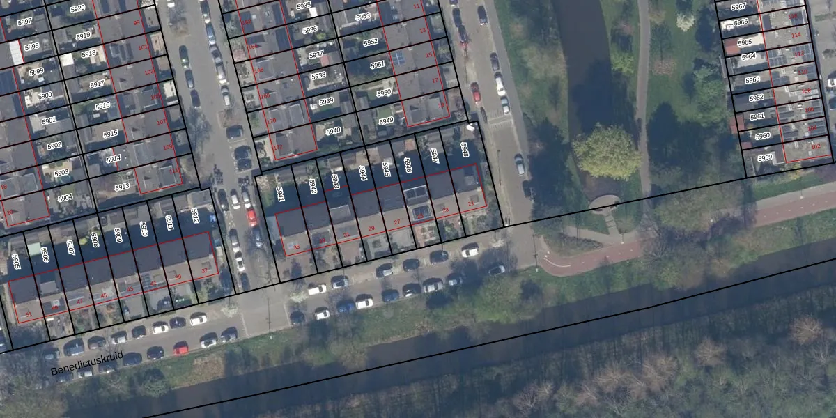 Benedictuskruid 25 is gelegen op kadastraal perceel HLG03B5946. Deze kadastrale aanduiding is uniek en wordt gebruikt door het Kadaster om eigendomsrechten en andere zakelijke rechten vast te leggen. Het perceel maakt onderdeel uit van de kadastrale gemeente Hillegersberg.