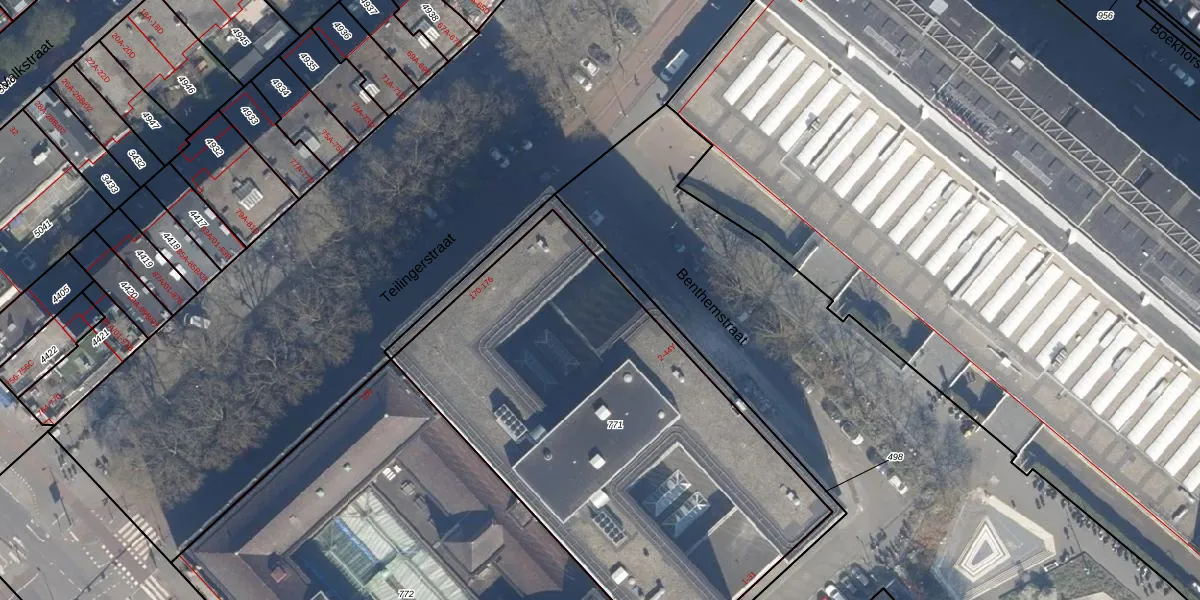 Het perceel waarop het adres ligt is RTD08-AD-771. De afkorting 'RTD08' staat voor kadastrale gemeente Rotterdam. Het perceel is met 2525 m² relatief groot. Het gemiddelde ligt in de kadastrale gemeente Rotterdam op 689,2 m². Het kleinste perceel in de kadastrale gemeente is 0 m² groot. De grootste perceeloppervlakte is 4,0 ha. Op het perceel zijn 333 adressen aanwezig. De huidige grenzen van het perceel zijn digitaal in de Basisregistratie Kadaster (BRK) geregistreerd op 13-02-2003.