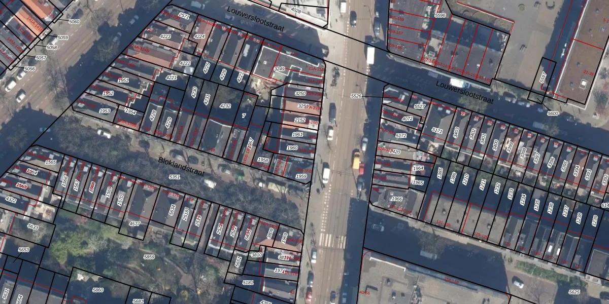 Het adres ligt op het perceel RTD07-W-1960, dat zich in de kadastrale gemeente Rotterdam bevindt. De gemiddelde perceelgrootte in Rotterdam is 506,86 m². Dit perceel is kleiner: de perceeloppervlakte bedraagt 76 m². Het grootste perceel in de kadastrale gemeente is 10,8 ha. Het kleinste perceel heeft een oppervlakte van 0 m². Op het perceel zijn 2 adressen aanwezig. De huidige grenzen van het perceel zijn digitaal in de Basisregistratie Kadaster (BRK) geregistreerd op 06-12-2002.