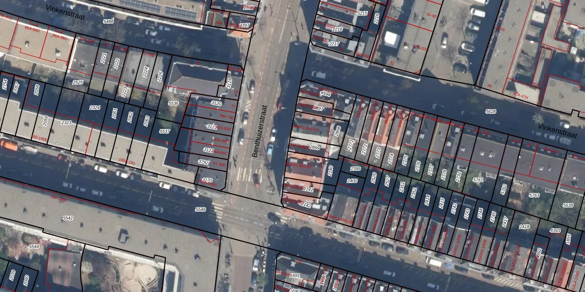 Benthuizerstraat 84-B-02 is gelegen op kadastraal perceel RTD07W2899. Deze kadastrale aanduiding is uniek en wordt gebruikt door het Kadaster om eigendomsrechten en andere zakelijke rechten vast te leggen. Het perceel maakt onderdeel uit van de kadastrale gemeente Rotterdam.