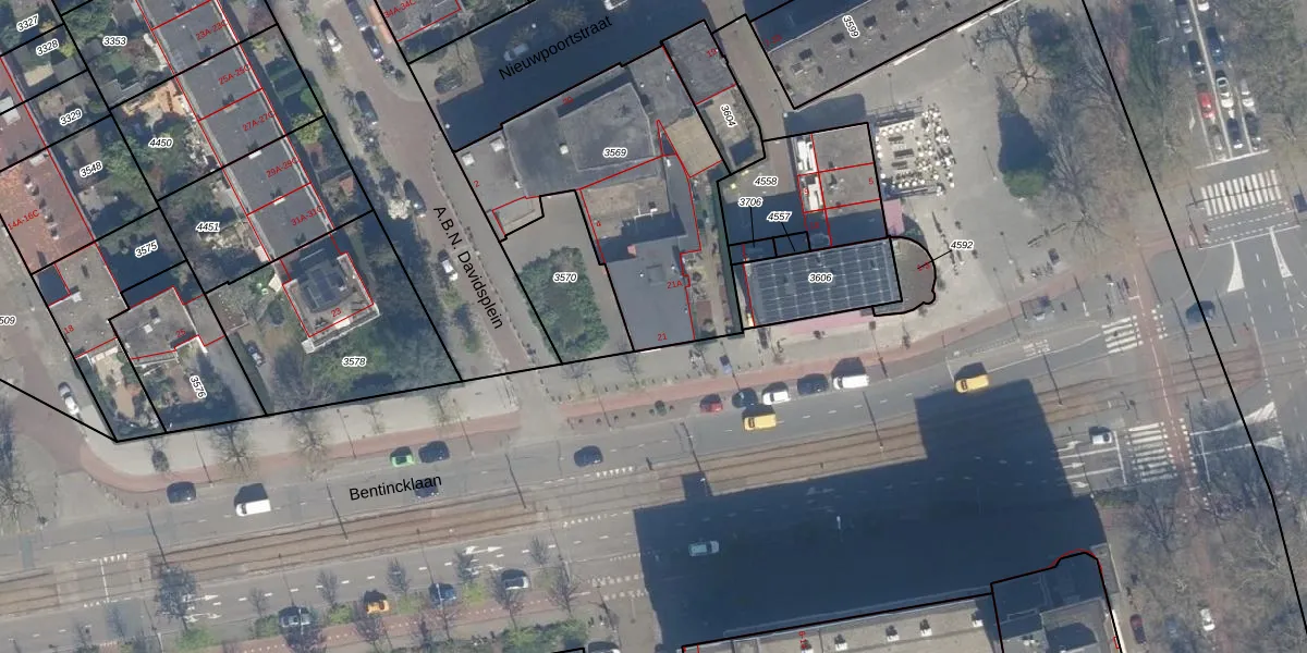 Bentincklaan 21 is gelegen op kadastraal perceel RTD10Z3569. Deze kadastrale aanduiding is uniek en wordt gebruikt door het Kadaster om eigendomsrechten en andere zakelijke rechten vast te leggen. Het perceel maakt onderdeel uit van de kadastrale gemeente Rotterdam.