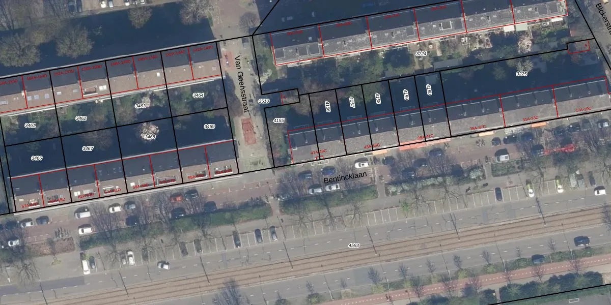 Bentincklaan 49-C is gelegen op kadastraal perceel RTD10Z4155. Deze kadastrale aanduiding is uniek en wordt gebruikt door het Kadaster om eigendomsrechten en andere zakelijke rechten vast te leggen. Het perceel maakt onderdeel uit van de kadastrale gemeente Rotterdam.