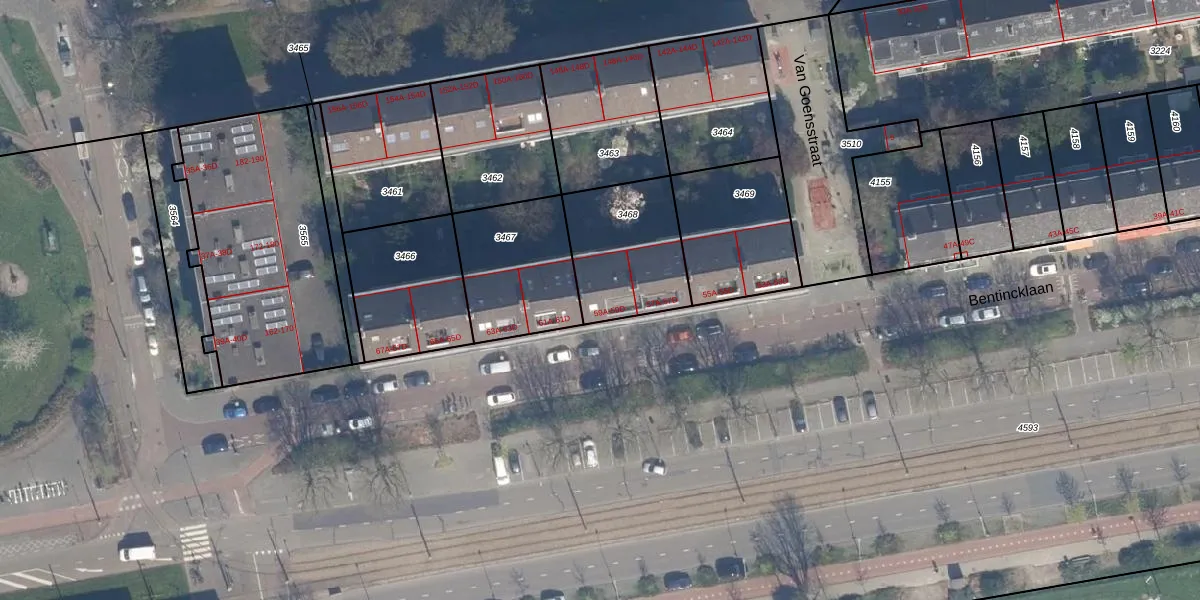 Het perceel waarop Bentincklaan 59-A staat heeft een oppervlakte van 405 m². Dit is een groot perceel. De perceeloppervlakte wordt geregistreerd door het Kadaster. Gedetailleerde informatie over de maten van dit perceel kunt u vinden in het rapport Kadastrale kaart met maatvoering van Bentincklaan 59-A.