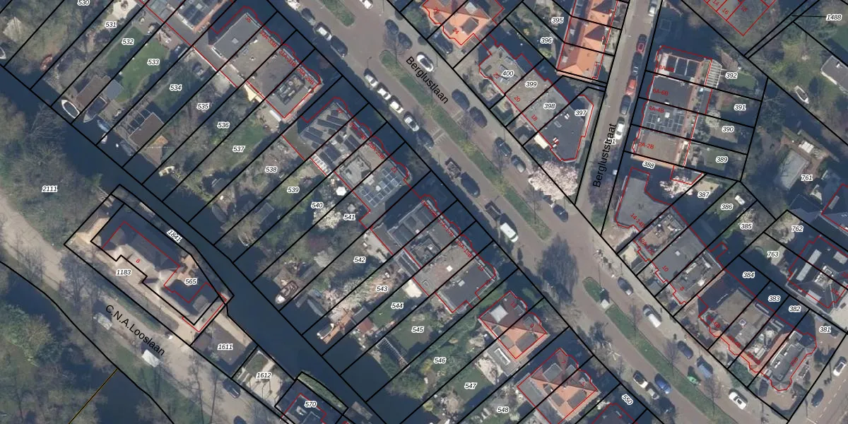 Het perceel waarop Berglustlaan 19-A staat heeft een oppervlakte van 445 m². Dit is een groot perceel. De perceeloppervlakte wordt geregistreerd door het Kadaster. Gedetailleerde informatie over de maten van dit perceel kunt u vinden in het rapport Kadastrale kaart met maatvoering van Berglustlaan 19-A.