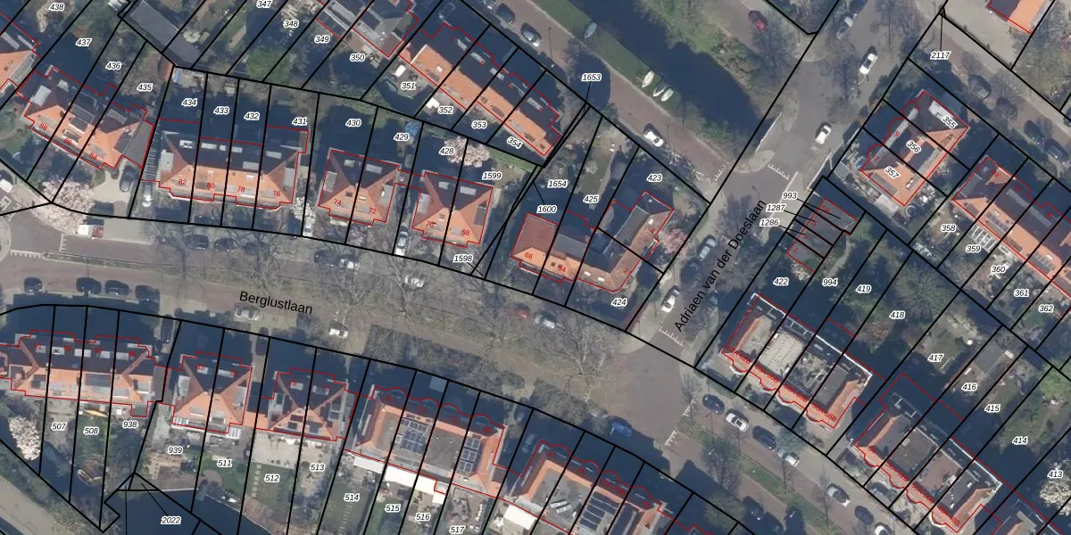Het perceel waarop Berglustlaan 66 staat heeft een oppervlakte van 266 m². Dit is een middelgroot perceel. De perceeloppervlakte wordt geregistreerd door het Kadaster. Gedetailleerde informatie over de maten van dit perceel kunt u vinden in het rapport Kadastrale kaart met maatvoering van Berglustlaan 66.