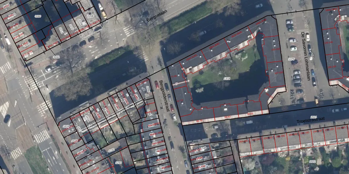 Het adres is gelegen op perceel 1374 in de sectie AB en de kadastrale gemeente Rotterdam. De kadastrale aanduiding is aldus RTD10-AB-1374. De gemiddelde perceeloppervlakte in de kadastrale gemeente Rotterdam is 1601,97 m². Dit perceel is met zijn 2841 m² dus groter dan gemiddeld. Het kleinste perceel in de kadastrale gemeente is 0 m² groot. De grootste perceeloppervlakte is 30,3 ha. Op het perceel liggen in totaal 76 adressen. De laatste wijziging in het de Basisregistratie Kadaster (BRK) was op 31-12-2002.