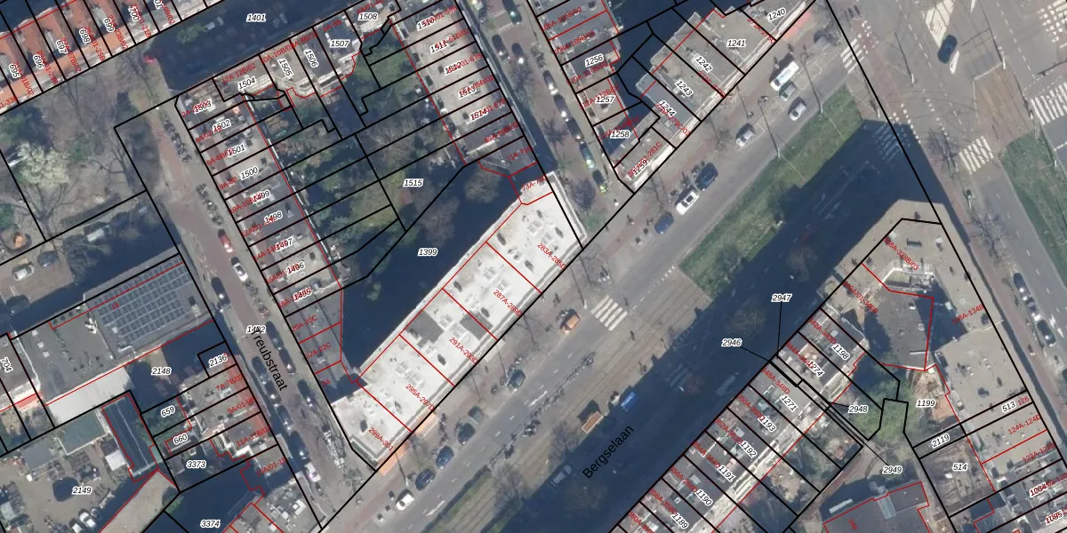 Bergselaan 285-A is gelegen op kadastraal perceel RTD10AB1399. Deze kadastrale aanduiding is uniek en wordt gebruikt door het Kadaster om eigendomsrechten en andere zakelijke rechten vast te leggen. Het perceel maakt onderdeel uit van de kadastrale gemeente Rotterdam.