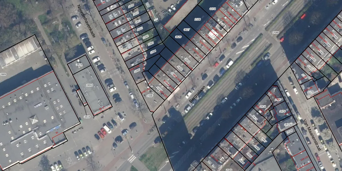 Bergselaan 321-C-02 is gelegen op kadastraal perceel RTD10AB1598. Deze kadastrale aanduiding is uniek en wordt gebruikt door het Kadaster om eigendomsrechten en andere zakelijke rechten vast te leggen. Het perceel maakt onderdeel uit van de kadastrale gemeente Rotterdam.