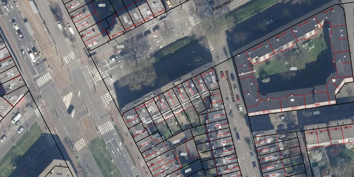Bergselaan 324-C is gelegen op kadastraal perceel RTD10AB1341. Deze kadastrale aanduiding is uniek en wordt gebruikt door het Kadaster om eigendomsrechten en andere zakelijke rechten vast te leggen. Het perceel maakt onderdeel uit van de kadastrale gemeente Rotterdam.