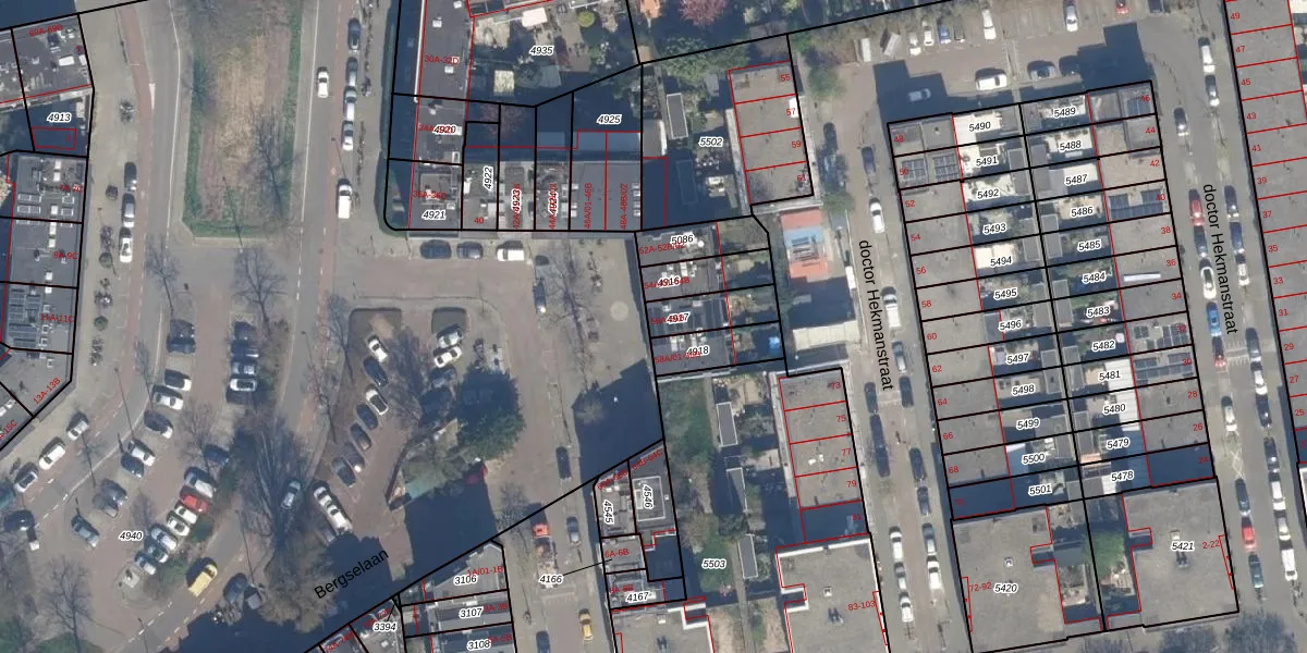 Bergselaan 56-B is gelegen op kadastraal perceel RTD09Y4917. Deze kadastrale aanduiding is uniek en wordt gebruikt door het Kadaster om eigendomsrechten en andere zakelijke rechten vast te leggen. Het perceel maakt onderdeel uit van de kadastrale gemeente Rotterdam.