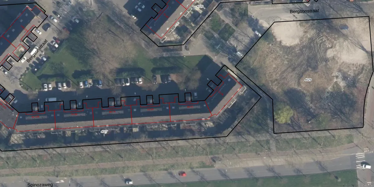 Het perceel waarop Bergsonstraat 38 staat heeft een oppervlakte van 3581 m². Dit is een zeer groot perceel. De perceeloppervlakte wordt geregistreerd door het Kadaster. Gedetailleerde informatie over de maten van dit perceel kunt u vinden in het rapport Kadastrale kaart met maatvoering van Bergsonstraat 38.