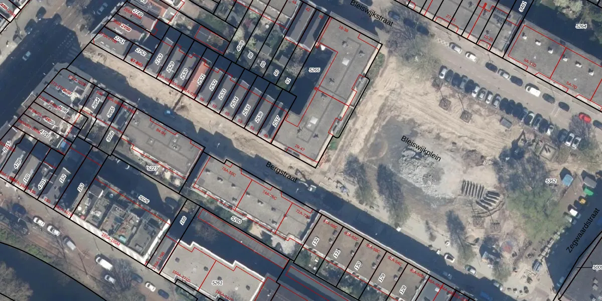 Bergstraat 35 is gelegen op kadastraal perceel RTD08X5265. Deze kadastrale aanduiding is uniek en wordt gebruikt door het Kadaster om eigendomsrechten en andere zakelijke rechten vast te leggen. Het perceel maakt onderdeel uit van de kadastrale gemeente Rotterdam.