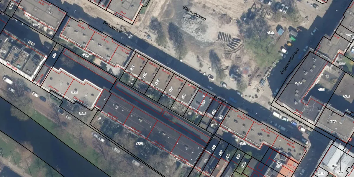 Bergstraat 54-B is gelegen op kadastraal perceel RTD08X129. Deze kadastrale aanduiding is uniek en wordt gebruikt door het Kadaster om eigendomsrechten en andere zakelijke rechten vast te leggen. Het perceel maakt onderdeel uit van de kadastrale gemeente Rotterdam.