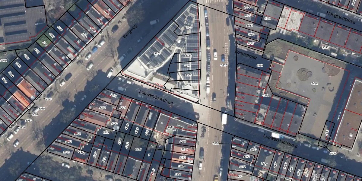 Het adres ligt op het perceel RTD07-W-4028, dat zich in de kadastrale gemeente Rotterdam bevindt. De gemiddelde perceelgrootte in Rotterdam is 506,86 m². Dit perceel is kleiner: de perceeloppervlakte bedraagt 86 m². Het grootste perceel in de kadastrale gemeente is 10,8 ha. Het kleinste perceel heeft een oppervlakte van 0 m². Op het perceel zijn 2 adressen aanwezig. In de Basisregistratie Kadaster (BRK) werden de grenzen van het perceel geregistreerd op 07-06-2006.