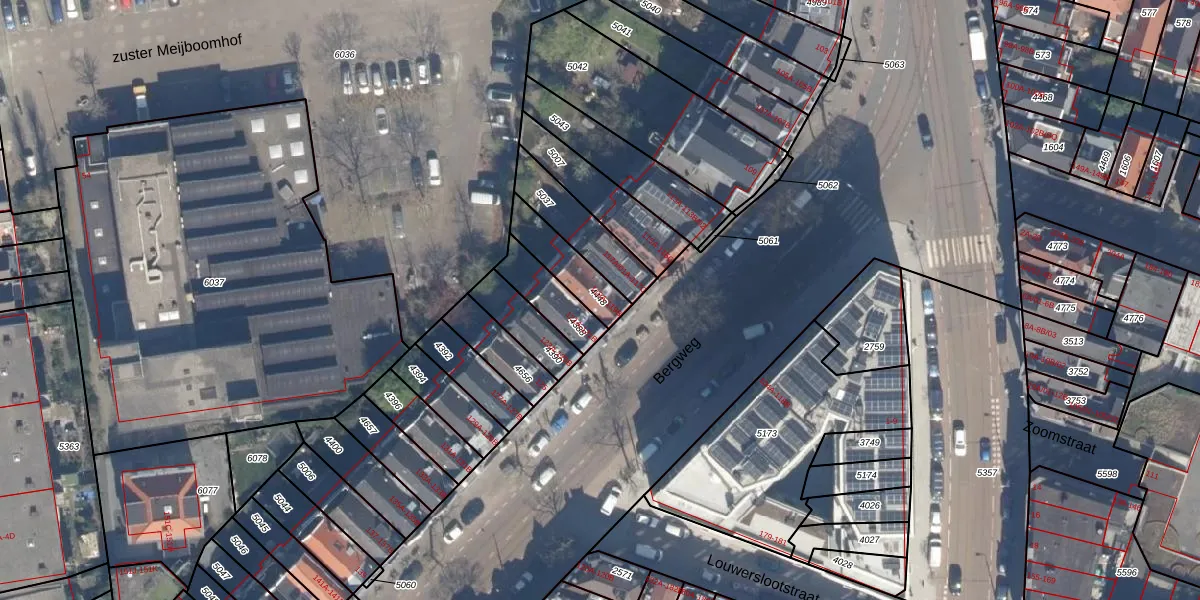 Bergweg 119-B is gelegen op kadastraal perceel RTD09Y4448. Deze kadastrale aanduiding is uniek en wordt gebruikt door het Kadaster om eigendomsrechten en andere zakelijke rechten vast te leggen. Het perceel maakt onderdeel uit van de kadastrale gemeente Rotterdam.