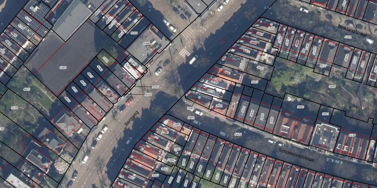 Het perceel waarop Bergweg 150 staat heeft een oppervlakte van 84 m². Dit is een klein perceel. De perceeloppervlakte wordt geregistreerd door het Kadaster. Gedetailleerde informatie over de maten van dit perceel kunt u vinden in het rapport Kadastrale kaart met maatvoering van Bergweg 150.