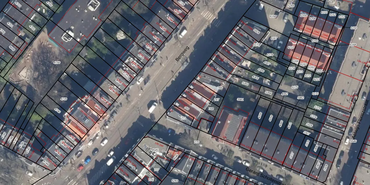 Bergweg 214-B-01 is gelegen op kadastraal perceel RTD07W768. Deze kadastrale aanduiding is uniek en wordt gebruikt door het Kadaster om eigendomsrechten en andere zakelijke rechten vast te leggen. Het perceel maakt onderdeel uit van de kadastrale gemeente Rotterdam.