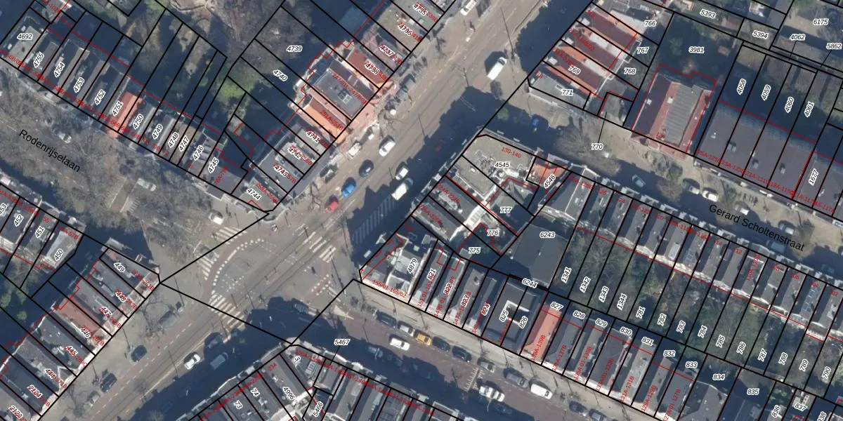 Het adres is gelegen op perceel 775 in de sectie W en de kadastrale gemeente Rotterdam. De kadastrale aanduiding is aldus RTD07-W-775. Het perceel is kleiner dan gemiddeld in Rotterdam. Het perceel is 134 m² groot, terwijl het gemiddelde ligt op 506,86 m². De grootste perceeloppervlakte in de kadastrale gemeente is 10,8 ha. De kleinste oppervlakte bedraagt 0 m². Op het perceel liggen in totaal 2 adressen. De huidige grenzen van het perceel zijn digitaal in de Basisregistratie Kadaster (BRK) geregistreerd op 10-07-2003.