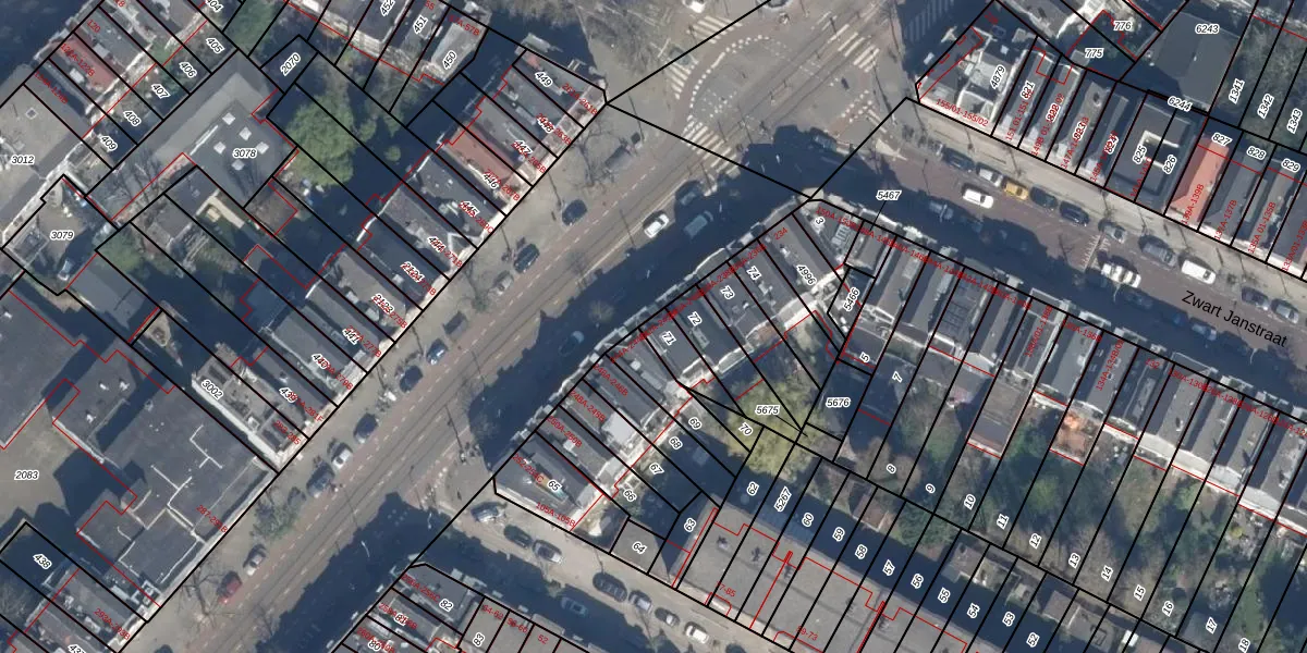 Het adres is gelegen op perceel 71 in de sectie X en de kadastrale gemeente Rotterdam. De kadastrale aanduiding is aldus RTD08-X-71. Het perceel is kleiner dan gemiddeld in Rotterdam. Het perceel is 82 m² groot, terwijl het gemiddelde ligt op 689,2 m². De grootste perceeloppervlakte in de kadastrale gemeente is 4,0 ha. De kleinste oppervlakte bedraagt 0 m². Er zijn 2 adressen aanwezig op het perceel. De laatste wijziging in het de Basisregistratie Kadaster (BRK) was op 31-12-2002.