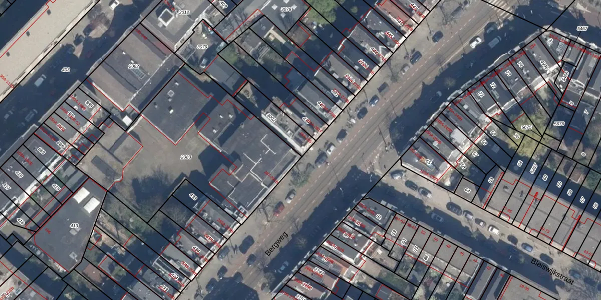 Bergweg 285 is gelegen op kadastraal perceel RTD10AB3002. Deze kadastrale aanduiding is uniek en wordt gebruikt door het Kadaster om eigendomsrechten en andere zakelijke rechten vast te leggen. Het perceel maakt onderdeel uit van de kadastrale gemeente Rotterdam.