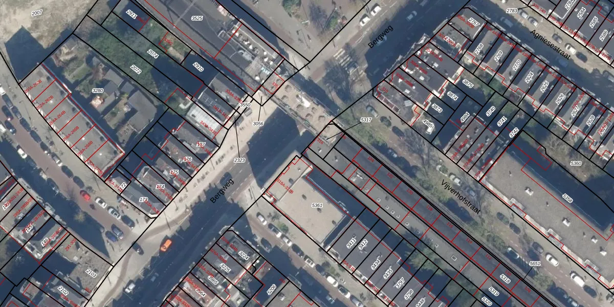 Bergweg 316 is gelegen op kadastraal perceel RTD08X5320. Deze kadastrale aanduiding is uniek en wordt gebruikt door het Kadaster om eigendomsrechten en andere zakelijke rechten vast te leggen. Het perceel maakt onderdeel uit van de kadastrale gemeente Rotterdam.
