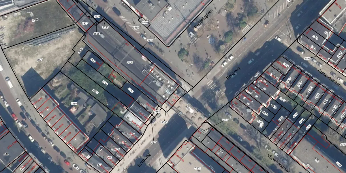 Bergweg 335 is gelegen op kadastraal perceel RTD10AB3525. Deze kadastrale aanduiding is uniek en wordt gebruikt door het Kadaster om eigendomsrechten en andere zakelijke rechten vast te leggen. Het perceel maakt onderdeel uit van de kadastrale gemeente Rotterdam.