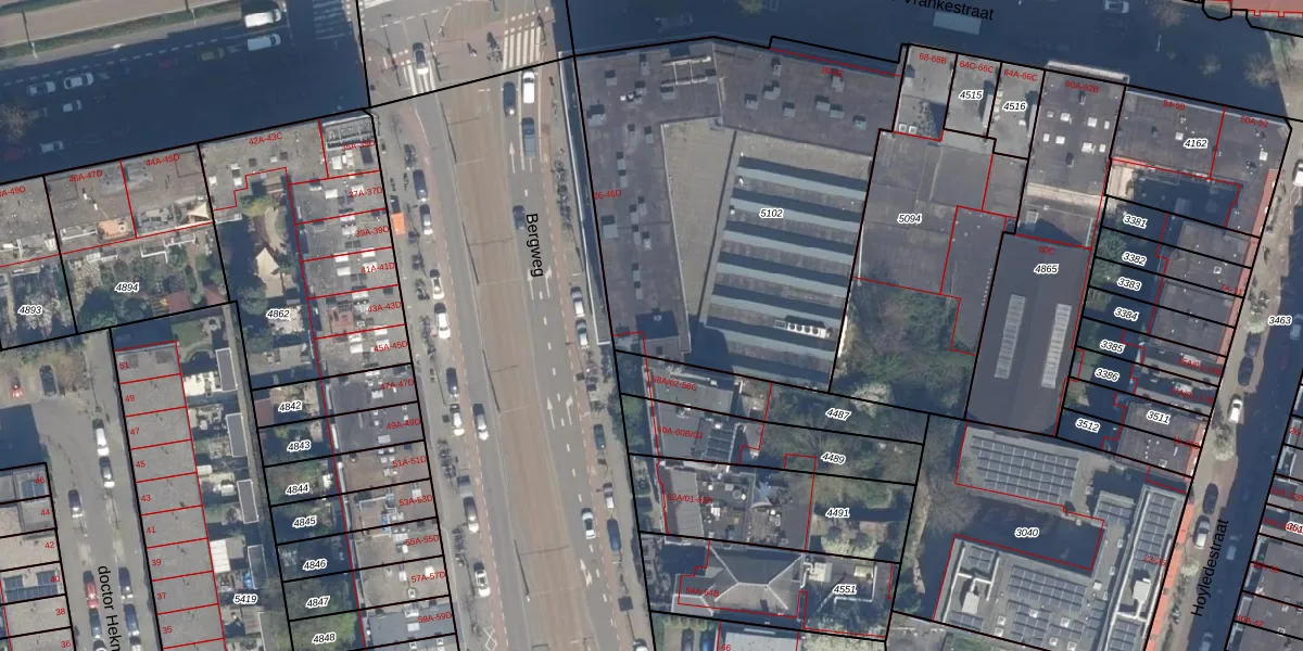 Bergweg 34-A is gelegen op kadastraal perceel RTD09Y5102. Deze kadastrale aanduiding is uniek en wordt gebruikt door het Kadaster om eigendomsrechten en andere zakelijke rechten vast te leggen. Het perceel maakt onderdeel uit van de kadastrale gemeente Rotterdam.