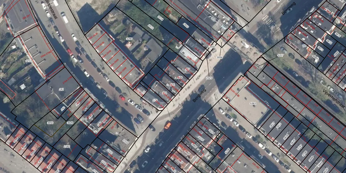 Bergweg 349-B is gelegen op kadastraal perceel RTD10AB175. Deze kadastrale aanduiding is uniek en wordt gebruikt door het Kadaster om eigendomsrechten en andere zakelijke rechten vast te leggen. Het perceel maakt onderdeel uit van de kadastrale gemeente Rotterdam.