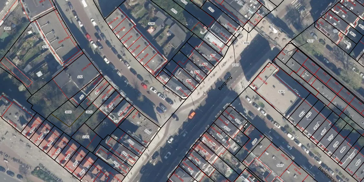 Bergweg 353-A is gelegen op kadastraal perceel RTD10AB173. Deze kadastrale aanduiding is uniek en wordt gebruikt door het Kadaster om eigendomsrechten en andere zakelijke rechten vast te leggen. Het perceel maakt onderdeel uit van de kadastrale gemeente Rotterdam.