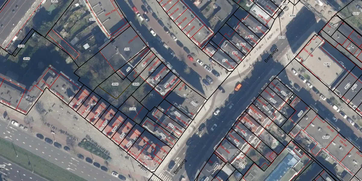 Bergweg 357 is gelegen op kadastraal perceel RTD10AB2103. Deze kadastrale aanduiding is uniek en wordt gebruikt door het Kadaster om eigendomsrechten en andere zakelijke rechten vast te leggen. Het perceel maakt onderdeel uit van de kadastrale gemeente Rotterdam.