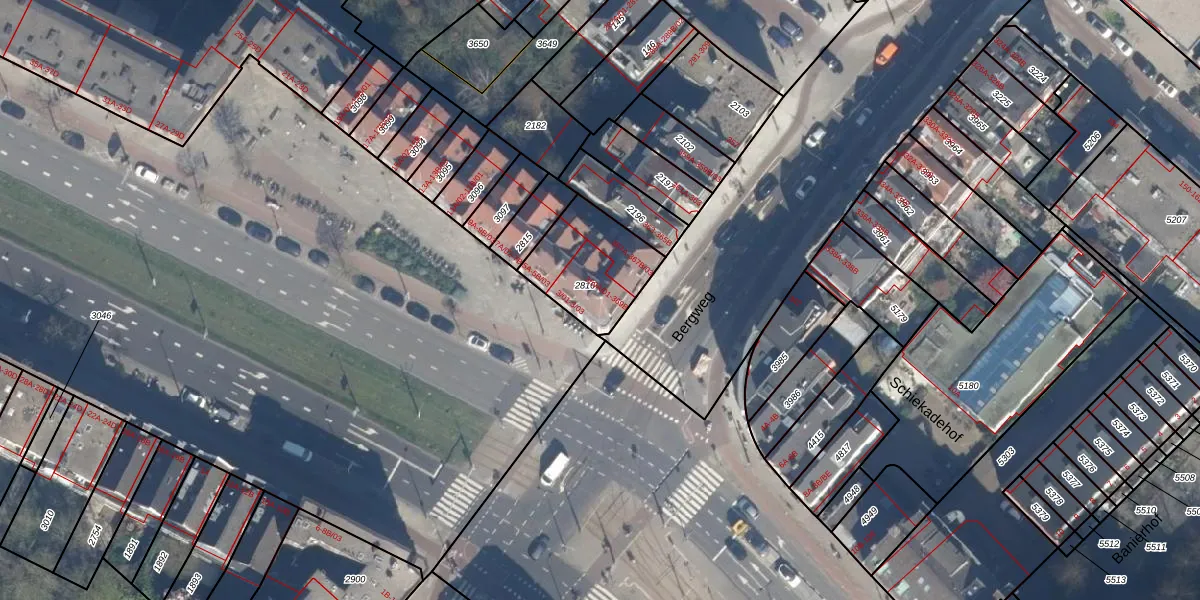 Bergweg 369-B is gelegen op kadastraal perceel RTD10AB2816. Deze kadastrale aanduiding is uniek en wordt gebruikt door het Kadaster om eigendomsrechten en andere zakelijke rechten vast te leggen. Het perceel maakt onderdeel uit van de kadastrale gemeente Rotterdam.