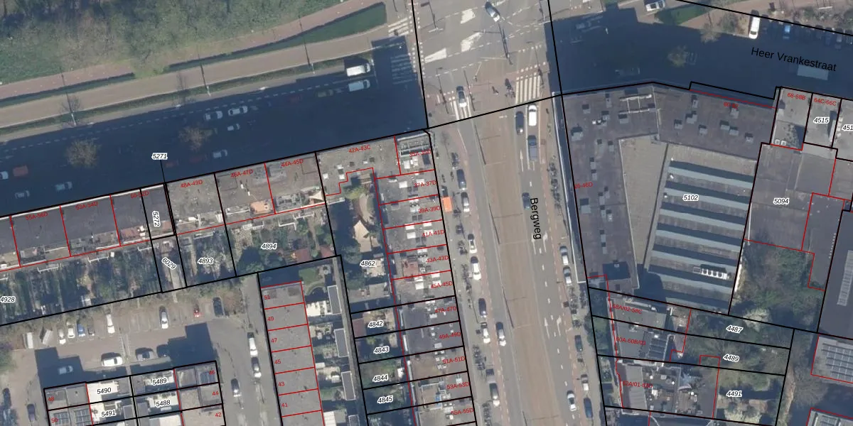 Bergweg 39-D is gelegen op kadastraal perceel RTD09Y4862. Deze kadastrale aanduiding is uniek en wordt gebruikt door het Kadaster om eigendomsrechten en andere zakelijke rechten vast te leggen. Het perceel maakt onderdeel uit van de kadastrale gemeente Rotterdam.