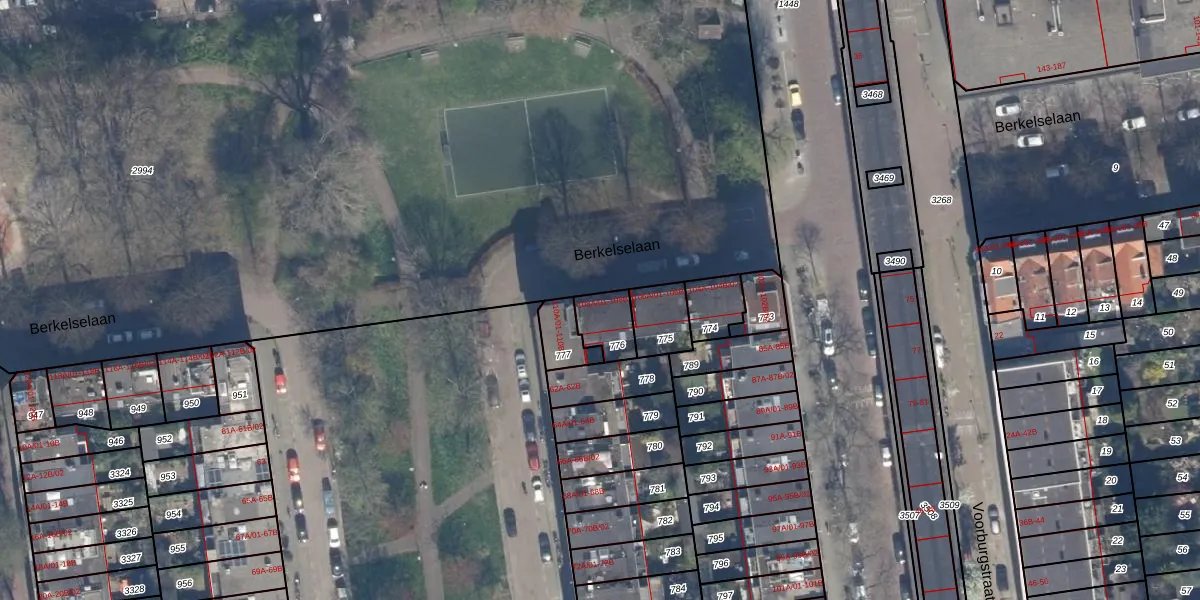 Berkelselaan 108-A-01 is gelegen op kadastraal perceel RTD10AB776. Deze kadastrale aanduiding is uniek en wordt gebruikt door het Kadaster om eigendomsrechten en andere zakelijke rechten vast te leggen. Het perceel maakt onderdeel uit van de kadastrale gemeente Rotterdam.