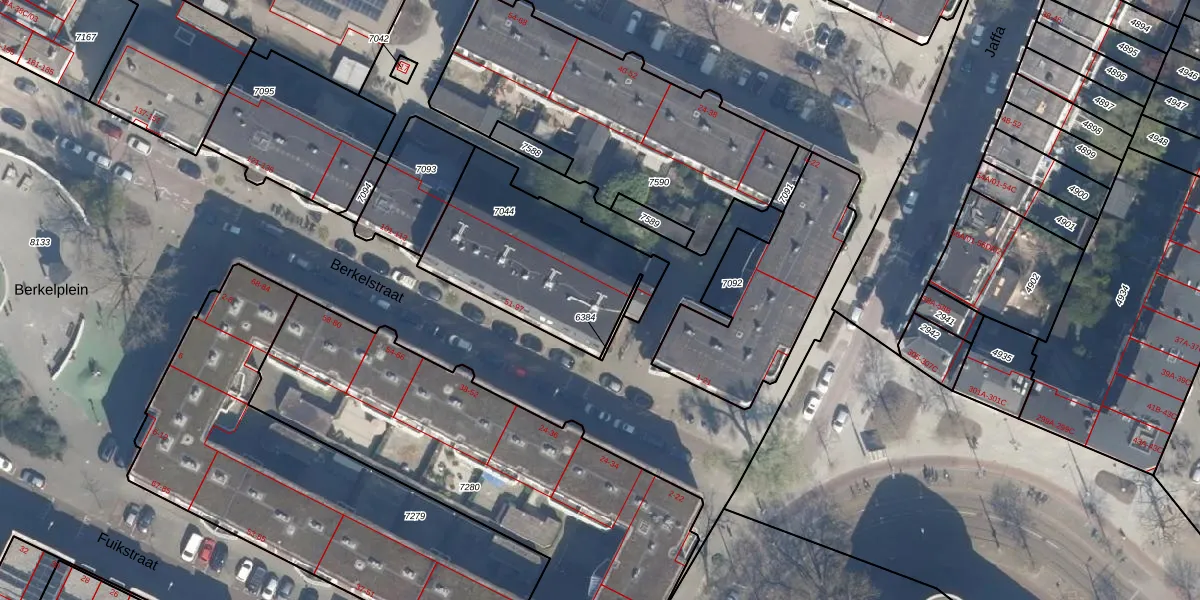 Het adres is gelegen op perceel 7044 in de sectie R en de kadastrale gemeente Rotterdam. De kadastrale aanduiding is aldus RTD07-R-7044. Het perceel is met 712 m² relatief groot. Het gemiddelde ligt in de kadastrale gemeente Rotterdam op 506,86 m². De grootste perceeloppervlakte in de kadastrale gemeente is 10,8 ha. De kleinste oppervlakte bedraagt 0 m². Op het perceel zijn 24 adressen aanwezig. In de Basisregistratie Kadaster (BRK) werden de grenzen van het perceel geregistreerd op 24-01-2003.