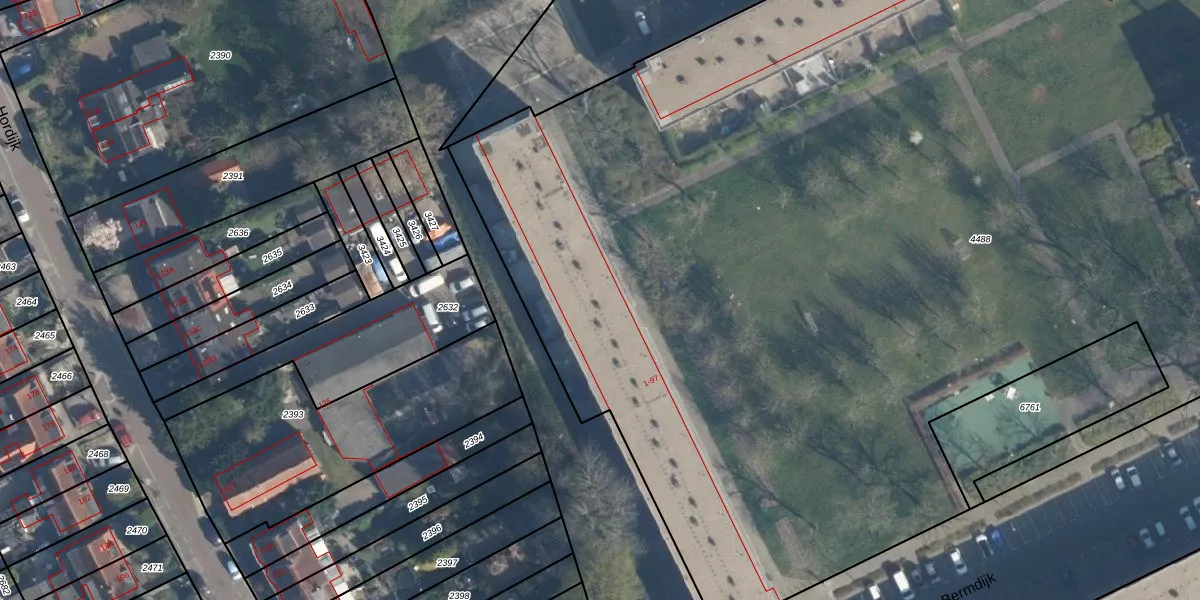 Het perceel waarop Bermdijk 89 staat heeft een oppervlakte van 1,2 ha. Dit is een zeer groot perceel. De perceeloppervlakte wordt geregistreerd door het Kadaster. Gedetailleerde informatie over de maten van dit perceel kunt u vinden in het rapport Kadastrale kaart met maatvoering van Bermdijk 89.