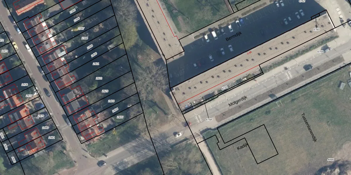 Het perceel waarop Bermdijk 98 staat heeft een oppervlakte van 1280 m². Dit is een zeer groot perceel. De perceeloppervlakte wordt geregistreerd door het Kadaster. Gedetailleerde informatie over de maten van dit perceel kunt u vinden in het rapport Kadastrale kaart met maatvoering van Bermdijk 98.