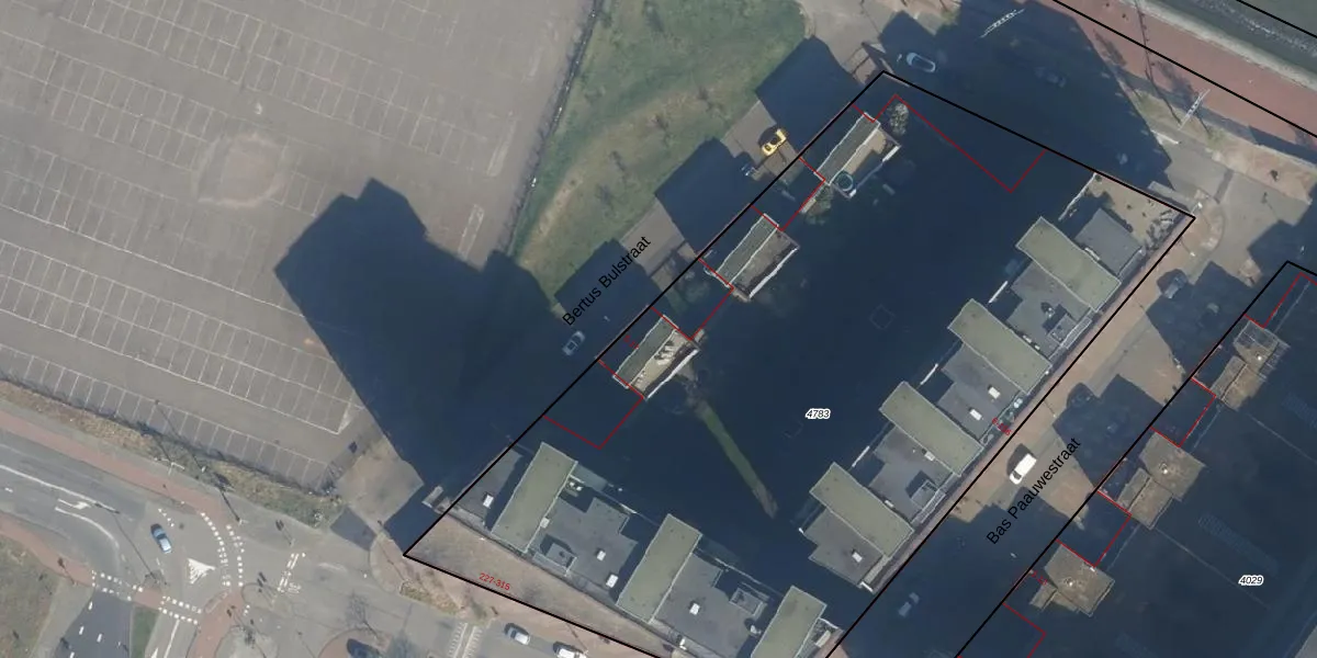 Het perceel waarop Bertus Bulstraat 9 staat heeft een oppervlakte van 5435 m². Dit is een zeer groot perceel. De perceeloppervlakte wordt geregistreerd door het Kadaster. Gedetailleerde informatie over de maten van dit perceel kunt u vinden in het rapport Kadastrale kaart met maatvoering van Bertus Bulstraat 9.
