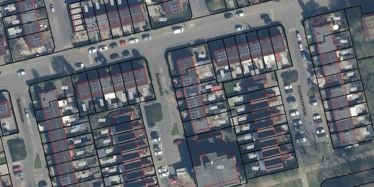 Het perceel waarop Bessentuin 6 staat heeft een oppervlakte van 154 m². Dit is een middelgroot perceel. De perceeloppervlakte wordt geregistreerd door het Kadaster. Gedetailleerde informatie over de maten van dit perceel kunt u vinden in het rapport Kadastrale kaart met maatvoering van Bessentuin 6.