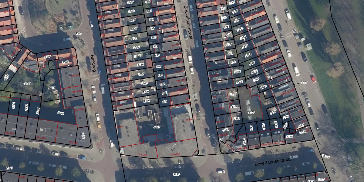 Het perceel waarop Beukelaarsstraat 81-A staat heeft een oppervlakte van 85 m². Dit is een klein perceel. De perceeloppervlakte wordt geregistreerd door het Kadaster. Gedetailleerde informatie over de maten van dit perceel kunt u vinden in het rapport Kadastrale kaart met maatvoering van Beukelaarsstraat 81-A.