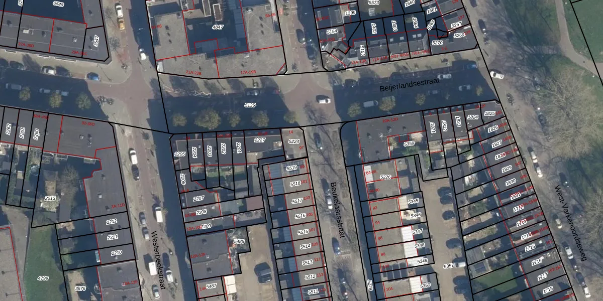Het perceel waarop Beukelaarsstraat 97 staat heeft een oppervlakte van 76 m². Dit is een klein perceel. De perceeloppervlakte wordt geregistreerd door het Kadaster. Gedetailleerde informatie over de maten van dit perceel kunt u vinden in het rapport Kadastrale kaart met maatvoering van Beukelaarsstraat 97.