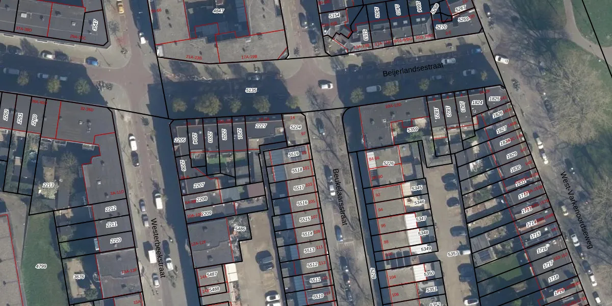 Het perceel waarop Beukelaarsstraat 99 staat heeft een oppervlakte van 80 m². Dit is een klein perceel. De perceeloppervlakte wordt geregistreerd door het Kadaster. Gedetailleerde informatie over de maten van dit perceel kunt u vinden in het rapport Kadastrale kaart met maatvoering van Beukelaarsstraat 99.