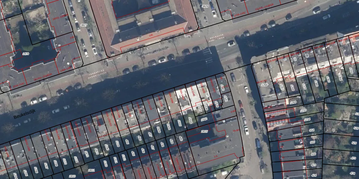 Beukelsdijk 106-A is gelegen op kadastraal perceel DHV00I1556. Deze kadastrale aanduiding is uniek en wordt gebruikt door het Kadaster om eigendomsrechten en andere zakelijke rechten vast te leggen. Het perceel maakt onderdeel uit van de kadastrale gemeente Delfshaven.