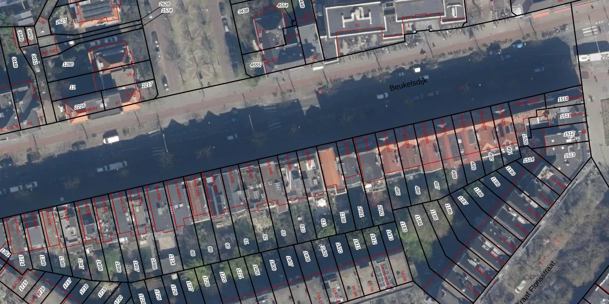 Beukelsdijk 32-B is gelegen op kadastraal perceel DHV00I611. Deze kadastrale aanduiding is uniek en wordt gebruikt door het Kadaster om eigendomsrechten en andere zakelijke rechten vast te leggen. Het perceel maakt onderdeel uit van de kadastrale gemeente Delfshaven.
