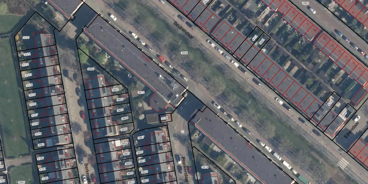 Het perceel waarop Beukendaal 105-C staat heeft een oppervlakte van 1966 m². Dit is een zeer groot perceel. De perceeloppervlakte wordt geregistreerd door het Kadaster. Gedetailleerde informatie over de maten van dit perceel kunt u vinden in het rapport Kadastrale kaart met maatvoering van Beukendaal 105-C.
