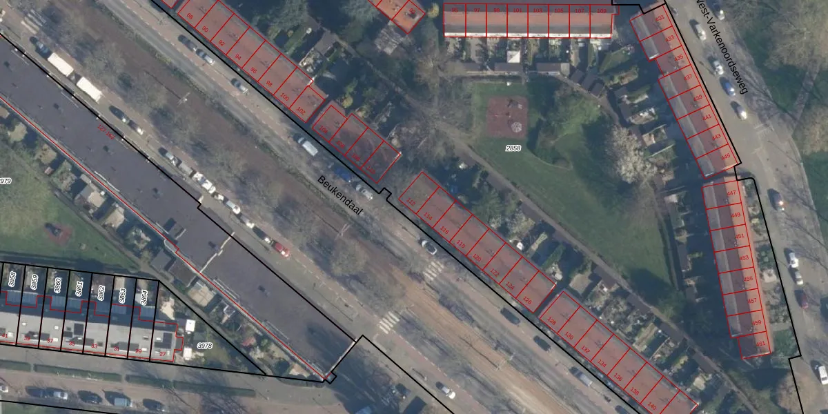 Beukendaal 112 is gelegen op kadastraal perceel RTD05V2858. Deze kadastrale aanduiding is uniek en wordt gebruikt door het Kadaster om eigendomsrechten en andere zakelijke rechten vast te leggen. Het perceel maakt onderdeel uit van de kadastrale gemeente Rotterdam.