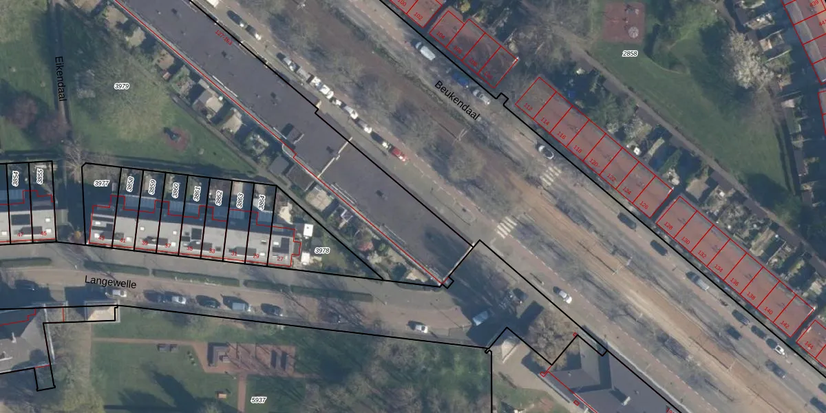 Het perceel waarop Beukendaal 159 staat heeft een oppervlakte van 5950 m². Dit is een zeer groot perceel. De perceeloppervlakte wordt geregistreerd door het Kadaster. Gedetailleerde informatie over de maten van dit perceel kunt u vinden in het rapport Kadastrale kaart met maatvoering van Beukendaal 159.